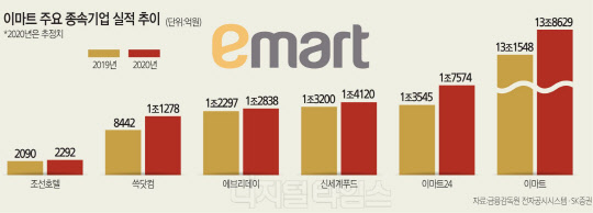 할인점을 비롯해 다른 계열사들 또한 코로나19 여파로 실적 타격이 불가피해 보인다. 코로나19 사태 이후 조선호텔을 비롯해 신세계푸드, 스타벅스, 스타필드 등 이마트의 다른 연결 자회사 및 관계기업들은 부진한 실적을 기록할 전망이다. 결국 쓱닷컴 홀로 성장세를 지속하는 셈이다.