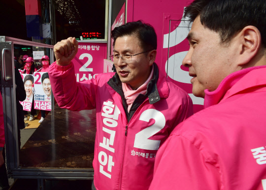 미래통합당 서울 종로 황교안 후보가 중구 중앙시장 앞에서 지지를 호소하고 있다.