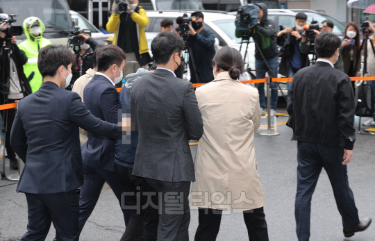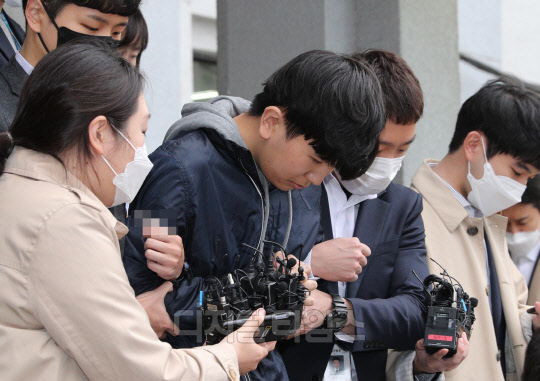 텔레그램 '박사방'에서 운영자 조주빈을 도와 대화방 운영 및 관리에 관여한 공범 '부따' 강훈이 17일 서울 종로경찰서에서 검찰로 송치되고 있다.