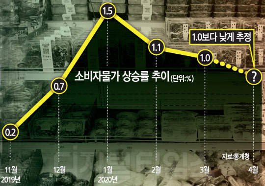 여기에 최근 산유국들의 감산에도 불구하고 수요 부진에 따라 국제유가도 연일 최저치를 기록하고 있다. 농산물 가격이 코로나19에 따른 노동공급 하락으로 상승 전환했지만 전체 물가를 끌어올리기엔 턱없이 부족한 상황이다.