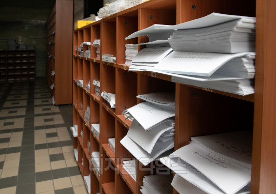 20대 국회 임기 종료를 나흘 앞둔 25일 서울 여의도 국회 한 상임위원회 회의실 앞에 법안 자료들이 놓여 있다.