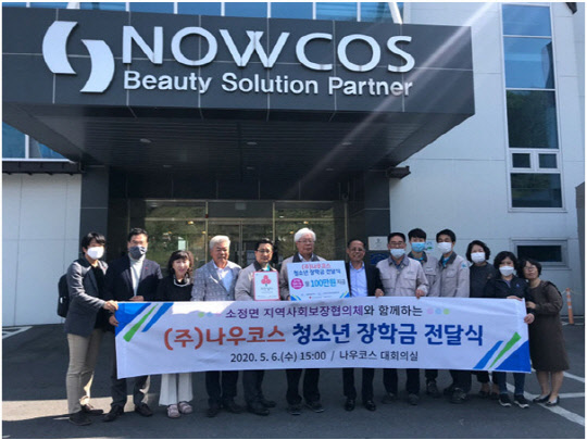 지난 6일 (주)나우코스는소정면 지역사회보장협의체 및 세종사회복지공동모금회 관계자 등 10여명이 참석한 가운데 장학금 전달식을 가졌다.나우코스는 지난 2015년 11월부터 전의면 소재의 기초생활수급자 등 중/고등학생 10명에게 매월 15만원씩 기부금을 전달해왔다. 장학사업을 확대하게 되면서 올해 5월부터는 전의면 차상위 계층 청소년 6명과 소정면 지역 취약계층 청소년 5명에게 학업 및 자기계발 등을 위한 장학금을 매월 1인 20만원씩 총 220만원을 지급했다.이달 말부터는 소정면 지역 취약계층 청소년 2명을 추가 지원할 예정이다.어려운 이웃과 나누고자 하는 노향선 대표이사의 '나눔 경영' 방침 아래 지역 사회로의 환원사업을 확장 해 나가려는 움직임이다.㈜나우코스는 앞으로도민간 자원의 발굴·협력 확대 차원으로 장학사업을 강력하게 추진할 예정이다.