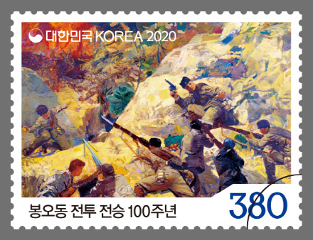 봉오동 전투는 일제 탄압에 신음하던 우리 민족에게 무장투쟁으로 자주독립을 이룰 수 있다는 희망을 주었고, 1920년대 독립전쟁이 활발하게 전개되는 계기가 됐다. 기념우표는 독립기념관에 소장 중인 서양화가 임직순(1921~1996)의 홍범도 장군의 봉오동 전투를 담았다.