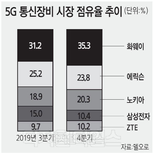 미국, 동맹국에 사용금지 압박 에릭슨·삼성 등 반사이익 기대 글로벌 5G장비 판도 달라질듯