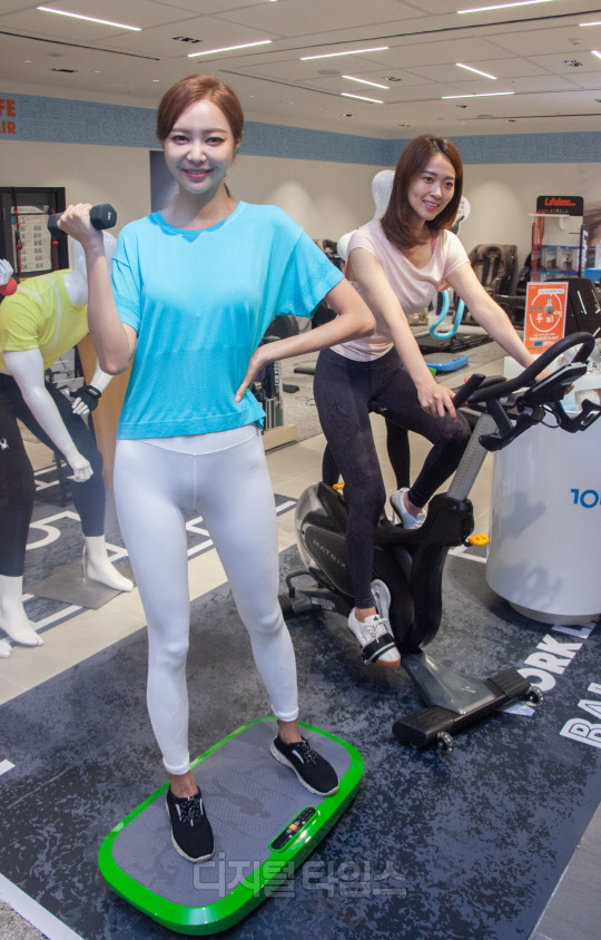 30일 서울 중구 신세계백화점 본점에서 모델들이 홈트레이닝 관련 상품을 선보이고 있다. 신세계백화점은 오는 12일까지 전점에서 워라밸 페어를 열고 운동복과 실내 운동기구, 마사지기기 등을 선보인다.