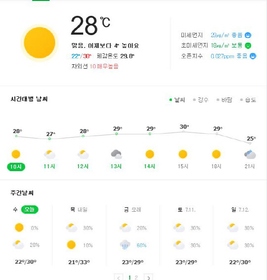 전국의 낮 최고기온은 24∼32도로 예보됐다.