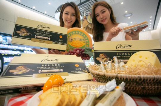 신세계백화점 모델들이 14일 서울 중 본점에서 버터계의 에르메스라고 불리는 프랑스 명품 버터 '라 꽁비에뜨 버터'를 선보이고 있다.