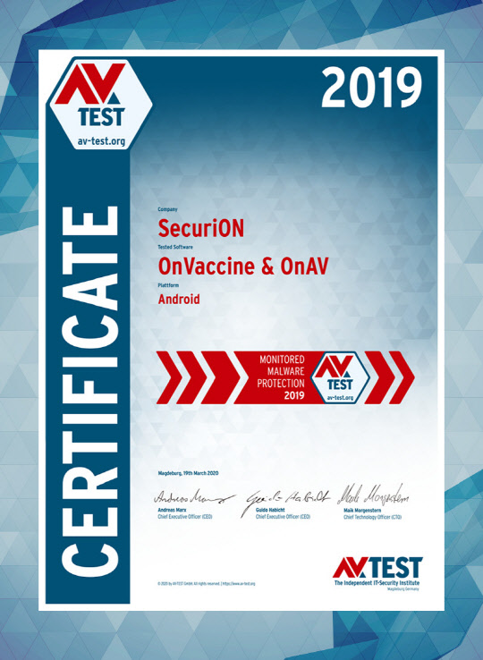 시큐리온은 2018년 7월부터 AV-TEST에 참여해 지난 5월까지 2년간 12회 연속 인증에 성공했다. 2018년 첫 테스트에서는 종합 탐지율 약 94.9%로 시작했으나 바로 다음 평가에서 98.91%로 획기적인 성능 개선을 이뤄냈다. 지난해 11월부터는 안정적으로 99% 이상의 탐지율을 유지하고 있으며 12회 중 최고 탐지율은 올해 3월의 99.82%다.