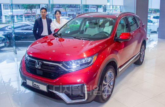 혼다코리아 모델들이 23일 서울 혼다자동차 KCC모터스 용산전시장에서 '뉴 CR-V 터보' 차량과 함께 포즈를 취하고 있다. '뉴 CR-V 터보'는 2017년 5세대 CR-V의 개발 컨셉을 계승함과 동시에 부분 변경을 통해 내외관 스타일링과 편의사양을 대폭 업그레이한 차량이다.