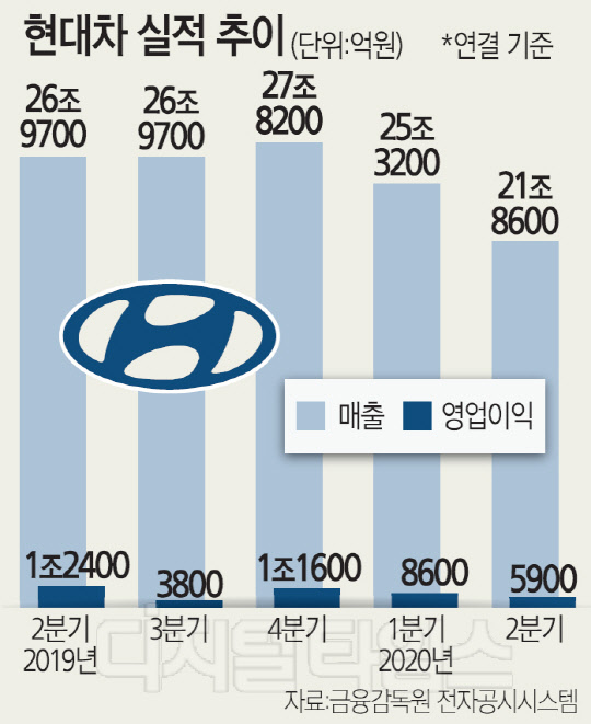 다만 당초 증권가에서 예상했던 영업이익 추정치(1000억~4000억원대)와 비교하면 선방했다는 평가가 나온다. 현대차 관계자는 "코로나19의 본격 확산에 따른 주요 시장에서의 이동 제한 조치 시행, 공장 가동 중단 등의 영향으로 글로벌 자동차 수요가 전년보다 크게 줄었다"며 "원화 약세의 우호적인 환율 환경, 개별소비세 인하, 노후차 교체 지원 등 국내 시장의 세제 혜택 효과 및 신차 판매 호조 등의 요인이 맞물려 수익 감소를 줄일 수 있었다"고 설명했다.