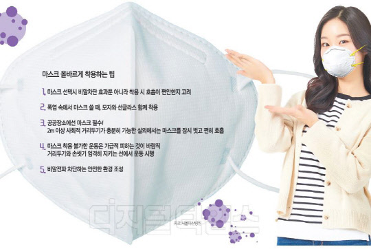 장시간 사용해도 호흡 문제 없어야 적합 … 이어링만 잡고 착용 바람직 2m 이상 사회적 거리두기 가능한 실외에선 잠시 벗고 편히 호흡할 것