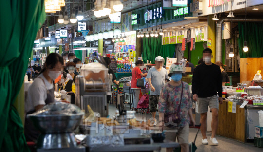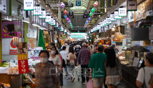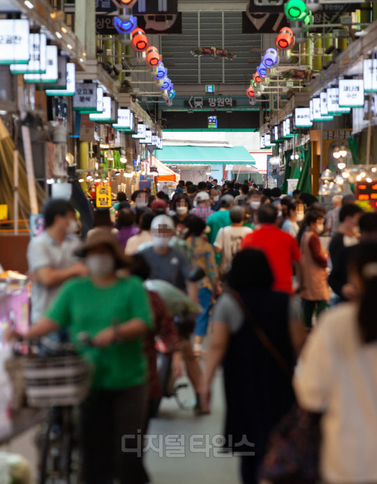 민족 최대 명절인 추석 연휴를 2주 앞둔 17일 서울 마포구 망원시장이 장을 보는 시민들로 붐비고 있다.