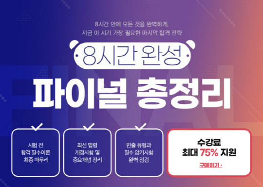 때문에 시험을 앞두고 방대한 이론 강의를 다 수강했지만 헷갈리는 수강생, 시간이 부족하여 포기를 고민하는 수험생, 이론과 문제를 끝냈지만 시험 직전까지 어떻게 마무리를 해야할지 모르는 수강생들에게 큰 도움이 될 것으로 보인다.