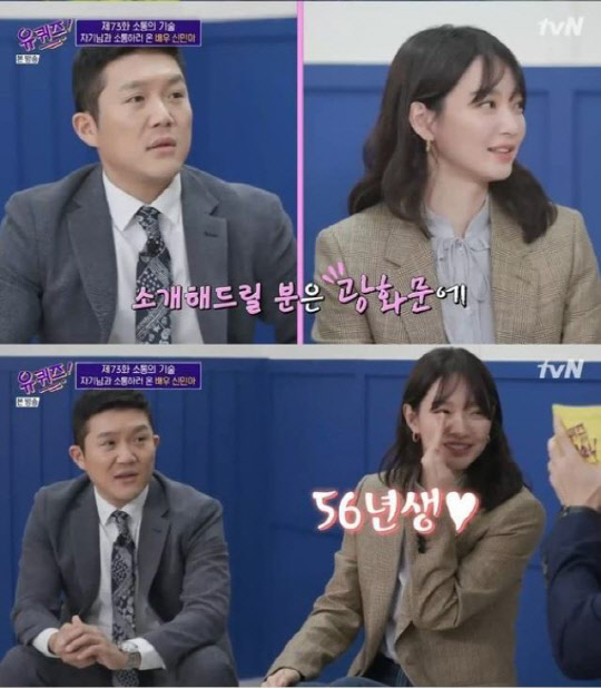 유재석은 "몇 년생이시냐"고 귓속말로 묻자, 신민아는 "56년생"이라며 해맑게 답했고, 대화를 엿들은 조세호는 "잘됐네. 우리 엄마랑 동갑이시네"라고 말해 폭소케했다.