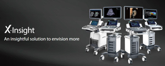 'X-Insight' 라인의 경우 장비 부팅속도는 모두 15초 내외이며, 내장 배터리가 장착돼 있기에 포터블한 이용이 가능하다. 앱으로 언제든 이미지를 실시간으로 확인할 수 있어 빠른 시간 안에 어디서든 초음파검사 영상을 볼 수 있다는 것이 장점이다. 또한 장비의 외관은 사용자의 편의를 고려하여 Dual wing 형태 Arm과 터치패널의 각도 조절 기능을 갖출 수 있도록 디자인 했다. 터치패널을 통해 더 직관적으로 이미지 확대·축소 기능을 사용할 수 있다.