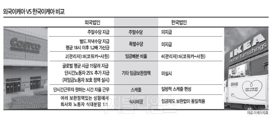 [디지털타임스 심화영 기자] 외국계 유통점인 코스트코와 이케아가 한국시장에서 거침없는 성장세를 이어가고 있지만, 노동조합에 대한 대응은 속수무책인 모습이다. 다국적기업이 한국법인 근로자에 대해 차별대우를 한다는 노조의 주장도 제기되고 있다.