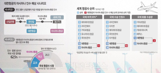 대한항공과 아시아나항공의 합병은 산업은행의 아이디어인 것으로 알려졌다. 산은은 HDC현대산업개발의 아시아나항공 인수 무산 이후 정상화 방안을 고심하던 중 고육지책을 냈다. 특히 코로나19 장기화로 항공업이 벼랑 끝 위기에 내몰린 상황에서 대형 항공사를 두고 정부 지원을 이어가는 것이 합리적이지 않다는 인식이 강하게 작용한 것으로 보인다. 아시아나항공은 산은과 수출입은행으로부터 지원받은 3조3000억원을 소진한 이후 기간산업안정기금 2400억원을 추가로 지원받았다. 대한항공 역시 올해 4월 산은과 수은으로부터 1조2000억원을 지원받았고 기간산업안정기금 신청도 예고된 상태다. 이에 따라 이번 합병은 정부 내부에서도 공감을 얻은 것으로 전해졌다.