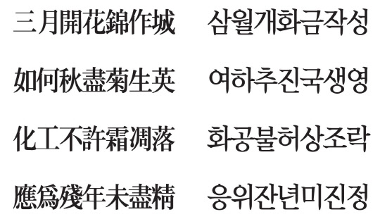 조선 중기 학자 남명(南冥) 조식(曺植 1501~1572)의 시다. 온갖 꽃은 따듯한 봄에 피어 군락을 이룬다. 반면 국화는 한 해가 저물고 서리가 내리는 가을에 꽃봉우리를 틔운다. 군계일학의 고상한 선비를 떠올리게 한다. 국화는 사군자(四君子) 매난국죽(梅蘭菊竹)의 하나로 사랑받았다.