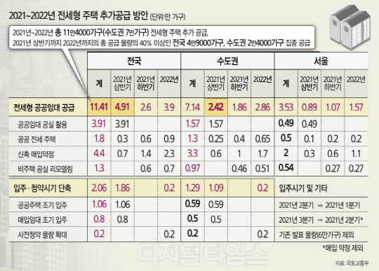 [디지털타임스 박상길 기자·이상현 기자] 정부가 19일 발표한 전세 대책의 요지는 확보 가능한 주택을 최대한 끌어모아 2022년까지 11만4000가구 이상 공급하면서 공공임대의 질도 높여 수요를 분산시키겠다는 것이다. 부동산 전문가들은 아파트가 아니라 선호도가 떨어지고 제때 공급될지도 미지수라 전세난을 당장 진화하긴 어려울 것으로 보고 있다.