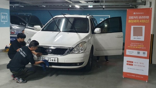 '불법 주정 차 방지 플랫폼'을 통해 유입된 고객의 차량은 '픽업 존 발랫 서비스' 또는 고객 사이트에서 '픽업 앤 딜리버리' 서비스를 이용 '티맵' 주차장, '하이 파킹'주차장과 같은 대기업 주차장으로 이동 후 '오토카지' 워터리스 출장세차 교육을 이수한 구로삶터지역자활센터 자활기업인 '크린세차' 구성원 분들로부터 주차장 내 프리미엄 워터리스 세차 서비스를 받게 된다.