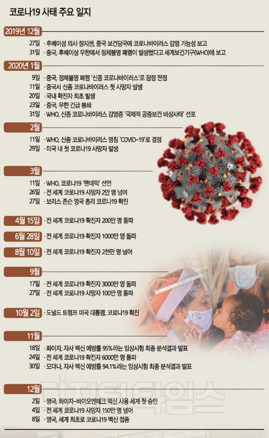 영국을 필두로 시작된 이번 코로나 백신 접종은 코로나 19의 공습이래 첫 인류의 반격이라는 점에서 주목된다. 과연 브레드 피트 주연의 영화 '월드워z'의 마지막 장면처럼 백신 확보와 함께 인류 생활에 다시 서광이 비칠 것이라는 기대도 높아지고 있다. 또 그만큼 백신을 먼저 더 확보하려는 각국의 경쟁도 격화하고 있다.