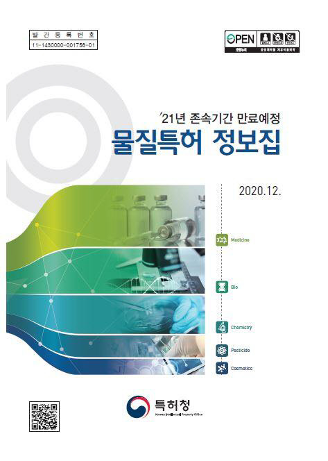 정보집에는 물질특허의 초록과 대표 청구항, 존속 기간 연장여부, 존속 기간 만료일, 특허권 권리변동 사항 등을 수록했다. 또 QR코드를 통해 해당 특허에 대한 세부 정보와 권리변동 사항, 특허등록공보까지 확인할 수 있다.