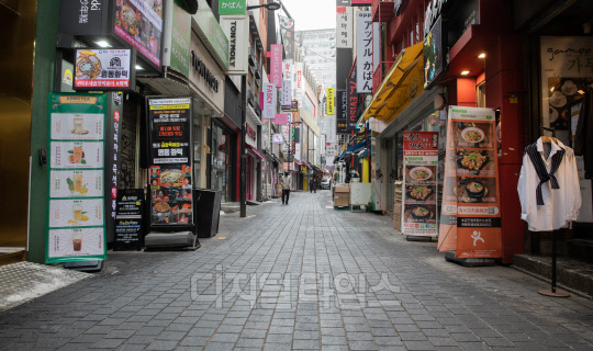 코로나19 확산으로 피해를 본 소상공인과 특수형태근로자, 프리랜서에 대한 3차 재난지원금이 지급되는 11일 서울 명동 거리가 한산한 모습을 보이고 있다.