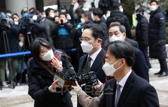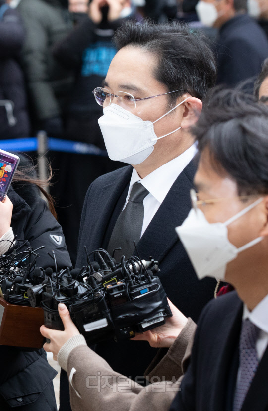 이재용 삼성전자 부회장이 18일 서초구 서울고등법원에서 열리는 국정논단 관련 파기환송심 선고 공판에 출석하고 있다. 이날 이 부회장은 징역 2년 6개월을 선고받은 뒤 법정구속 됐다.