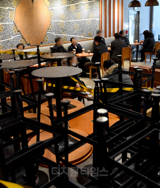 카페, 헬스장, 노래방 등 다중이용시설에 대한 코로나19 방역조치가 일부 완화된 18일 서울 한 카페에서 시민들이 자리에 앉아 음료를 마시고 있다.