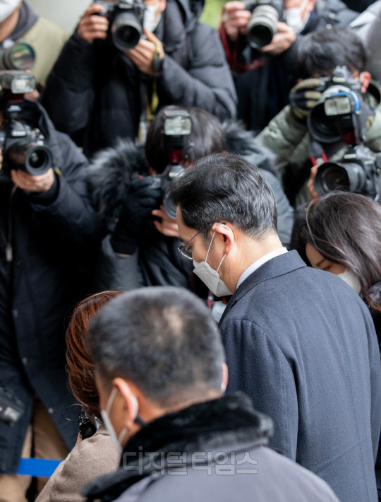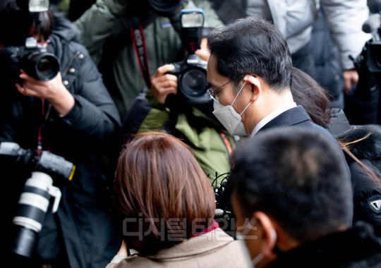 이재용 삼성전자 부회장이 18일 서초구 서울고등법원에서 열리는 국정논단 관련 파기환송심 선고 공판에 출석하고 있다. 이날 이 부회장은 징역 2년 6개월을 선고받은 뒤 법정구속 됐다.