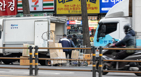 택배노동자 과로사 대책을 위한 사회적 합의기구가 분류작업에 전담인력 투입, 불가피한 경우 택배노동자에게 대가 지급 등의 내용이 담긴 합의문을 발표한 21일 서울의 한 거리에서 택배 노동자가 배송 작업을 하고 있다.