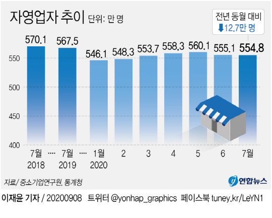 직원을 둔 자영업자가 계속 줄고, 1인 자영업자가 계속 늘어나는 것은 계속된 경기침체에 지난해 최저임금 인상과 코로나19 직격탄까지 겹치면서 자영업자들이 직원들을 모두 내보내고 혼자 사업을 운영하는 경우가 많아졌기 때문으로 보인다.