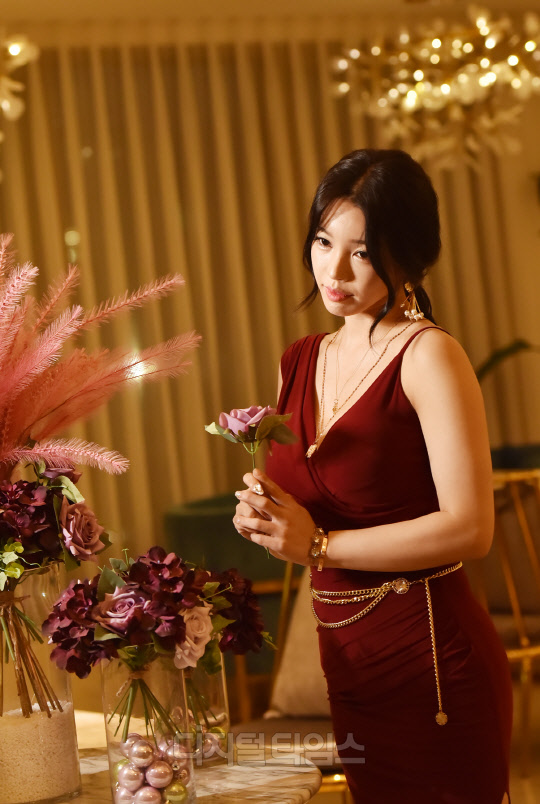 유튜버 '아리샤'(본명 고규림)가 부산 해운대에서 진행된 화보 촬영 현장에서 포즈를 취하고 있다.