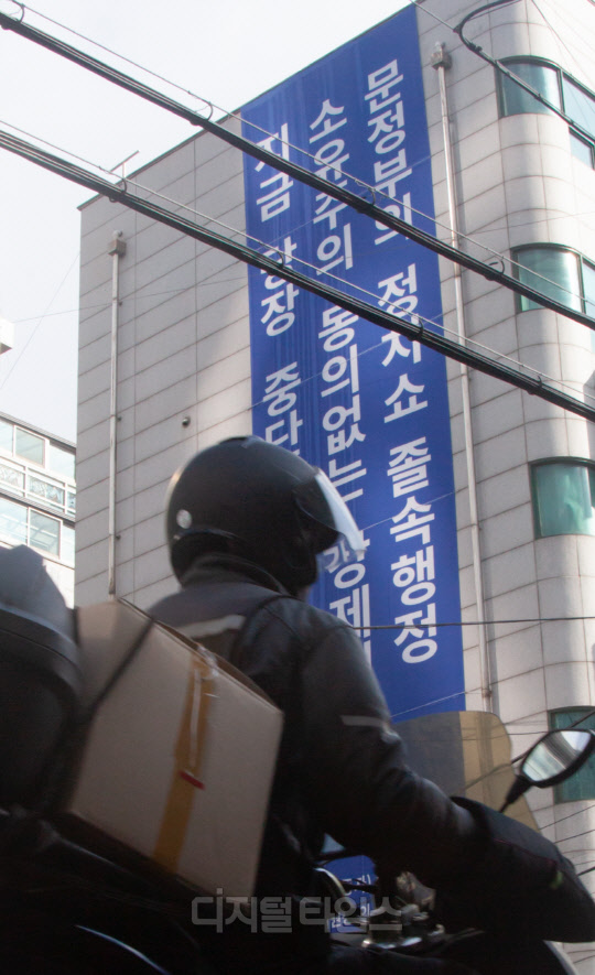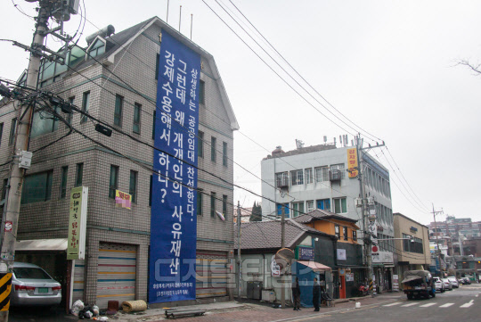 [포토] 서울역 쪽방촌 재개발 반발 현수막