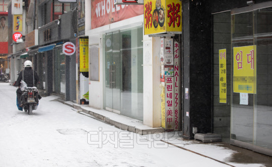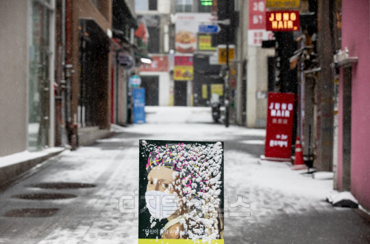 눈이 내린 16일 서울 명동 거리가 한적한 모습을 보이고 있다.