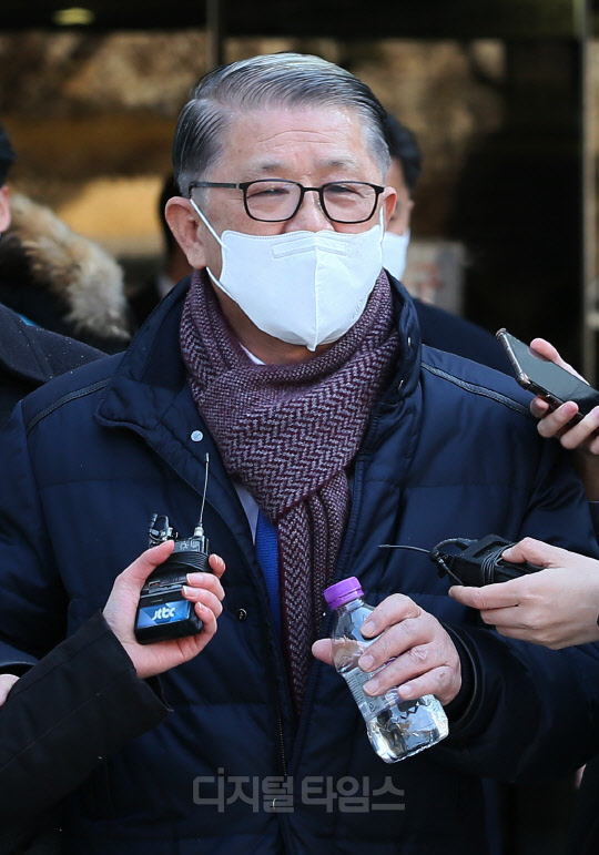 거액의 회삿돈 횡령·배임 혐의를 받고 있는 최신원 SK네트웍스 회장이 17일 서울중앙지방법원에서 구속 전 피의자 심문(영장실질심사)을 마친 뒤 이동하고 있다.
