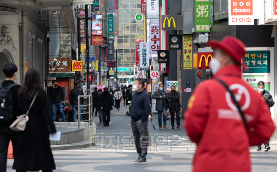 서울시 등록인구가 지난해 말 기준 32년 만에 처음으로 천만 명 아래로 내려갔다. 3일 서울시에 따르면 인구 감소 영향으로는 코로나19로 인한 외국인 감소 및 급격한 저출산·고령화 현상으로 조사됐다. 사진은 이날 서울 명동 거리의 모습.