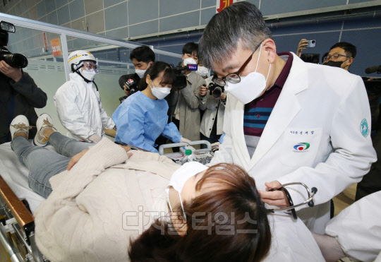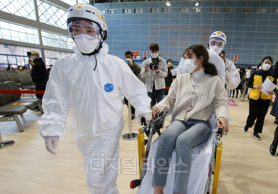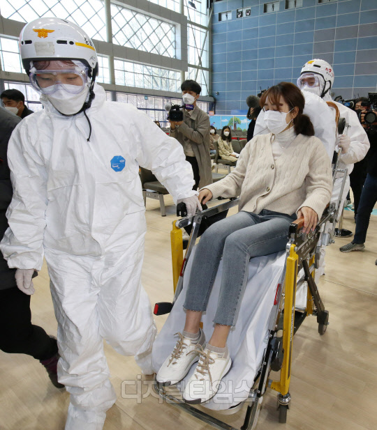 [포토] `이상반응 발생 접종대상자 이송`