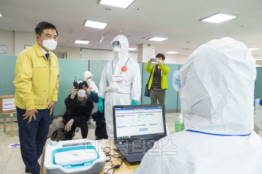 [포토] 서정협 권한대행, 특별사전투표소 현장 점검