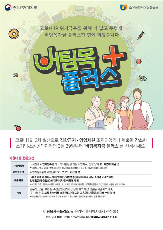 중기부는 신청자 편의를 위해 29일 오전 9시부터 버팀목자금 플러스 전용 콜센터와 온라인 채팅상담을 운영할 예정이다.