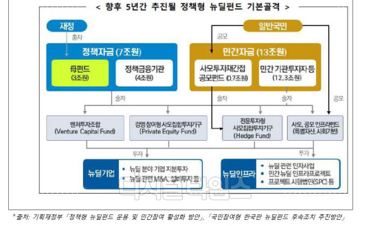 정책형 뉴딜펀드의 성과를 공유하기 위한 재간접 공모펀드는 5개 자산운용사(골든브릿지자산운용, 신한자산운용, KB자산운용, 한화자산운용, IBK자산운용)가 발행한다. KB자산운용을 제외한 4개 운용사는 증권신고서의 효력이 발휘된 상태다. KB자산운용은 아직 증권신고서 수리 절차가 완료되지 않은 것으로 전해졌다.