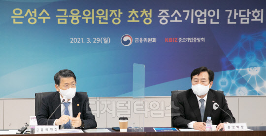 은성수 금융위원장이 29일 서울 여의도 중소기업중앙회에서 열린 금융위원장 초청 중소기업인 간담회에 참석해 인사말을 하고 있다.