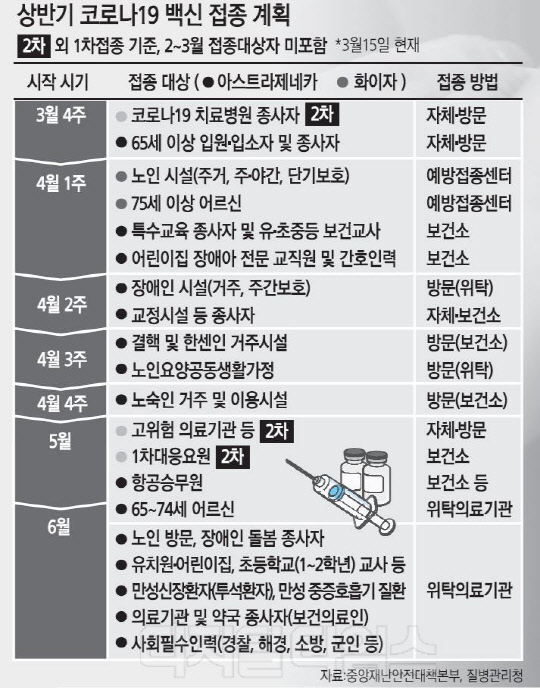 개별 계약한 아스트라제네카 백신은 5, 6월에 700만 회분이 순차적으로 도입된다. 코백스를 통한 공급분은 당초 계획보다 늦어진 4월 3주경에 43만 회분이 1차 도입될 예정이다. 얀센, 노바백스, 모더나 백신에 대해서는 도입 일정에 대한 협의가 아직 진행중이다.