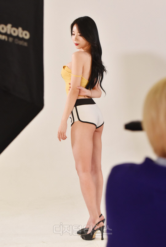 BJ 유화가 서울시 강남구 V1 스튜디오에서 진행된 남성지 MAXIM(맥심) 4월호 '미스맥심 콘테스트' 1라운드 화보 촬영현장에서 포즈를 취하고 있다.