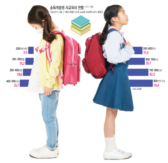 본래 체육과 예능 교육까지 받는 고소득층과 비교해 저소득층의 사교육은 교과과정에 집중돼 있었다. 코로나발 경기한파에 이 교육마저 포기하는 가구가 늘고 있는 것이다.