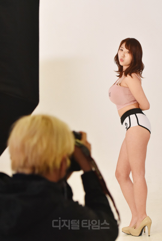 유튜버 벨벳이 서울시 강남구 V1 스튜디오에서 진행된 남성지 MAXIM(맥심) 5월호 '미스맥심 콘테스트' 1라운드 화보 촬영현장에서 포즈를 취하고 있다.