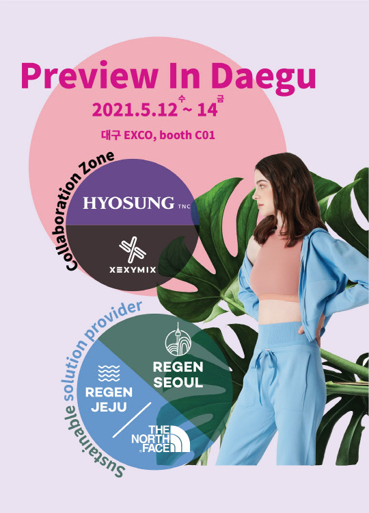 이번 전시회에서도 영원아웃도어의 '노스페이스'에 리젠제주(regen®jeju)가 적용된 노스페이스 K-ECO 삼다수 컬렉션이 전시될 예정이다. 리젠제주는 효성티앤씨가 제주도 등과 협업해 만든 재활용 섬유다.
