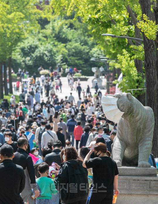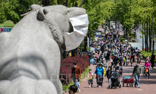 어린이날인 5일 서울 광진구 능동로 어린이대공원이 시민들로 붐비고 있다.