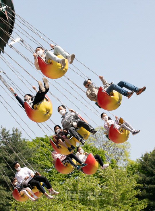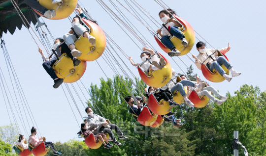 어린이날인 5일 서울 광진구 능동로 어린이대공원에서 어린이들이 놀이기구를 타며 즐거운 시간을 보내고 있다.