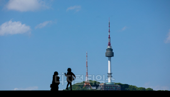 황사가 물러가고 화창한 날씨를 보인 9일 서울 용산구 국립중앙박물관에서 맑고 푸른 하늘이 보이고 있다.